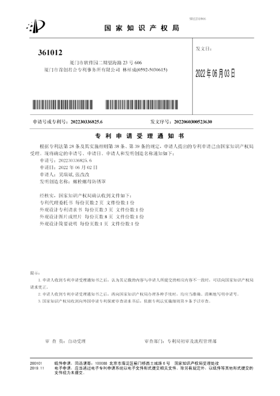 新專利受理通知書